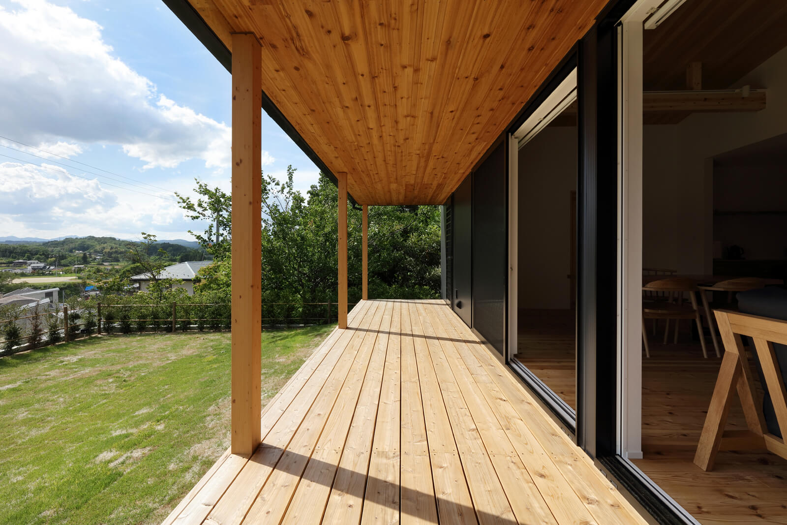 LDKに足を踏み入れると、西側の大開口の先に大きなウッドデッキと広い芝生の庭。さらにその先に開けた街並みや山々の景観が広がり、開放感は抜群。室内にいながらにして四季の移ろいを感じることができます。