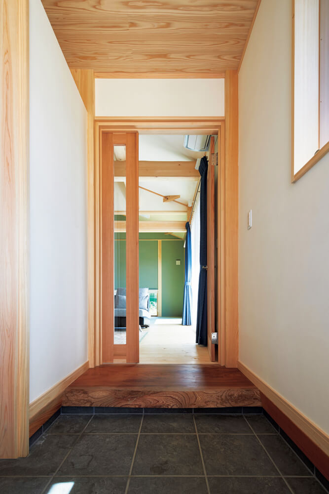 完成した家は、ご夫妻が開業する施療院を併設した店舗併用住宅。たっぷりと使われたヒノキが香り、まるで森林の中にいるような空気の心地よさをもたらしてくれます。東北の中では温暖で住みやすい土地柄ながら、断熱性能は北海道基準並み。「真夏日でも、家の中に入るとスーッとした清涼感がありました」とお二人は口を揃えます。