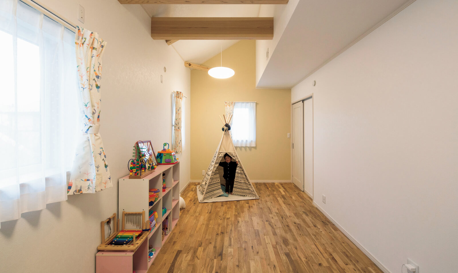 主暖房として、床下に設置したエアコンで流れる暖気が、ガラリを通して家全体を隅々まで均一に暖めます。「家のどこにいても寒いと感じることがありません。子どもがのびのび遊んでいる姿を見ると、家を建てて本当に良かったと思います。性能にこだわった甲斐がありました」とSさんは笑顔で語ります。