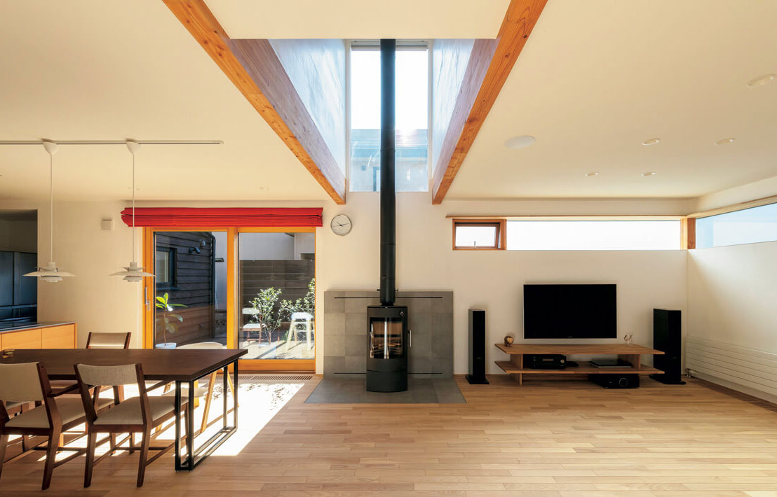 薪ストーブは家のつくりによって、暖房としての効果がより期待できる設置場所が変わってきます。例えば、薪ストーブは煙突からも放熱します。その熱を活かすなら、上下階を効率よく暖めるために、吹き抜けを生かした設計のほうがよいかもしれません。またLDK全体を均一に暖めたいなら、LDK空間の真ん中に置いたほうがムラなく暖まりやすいということもあります。