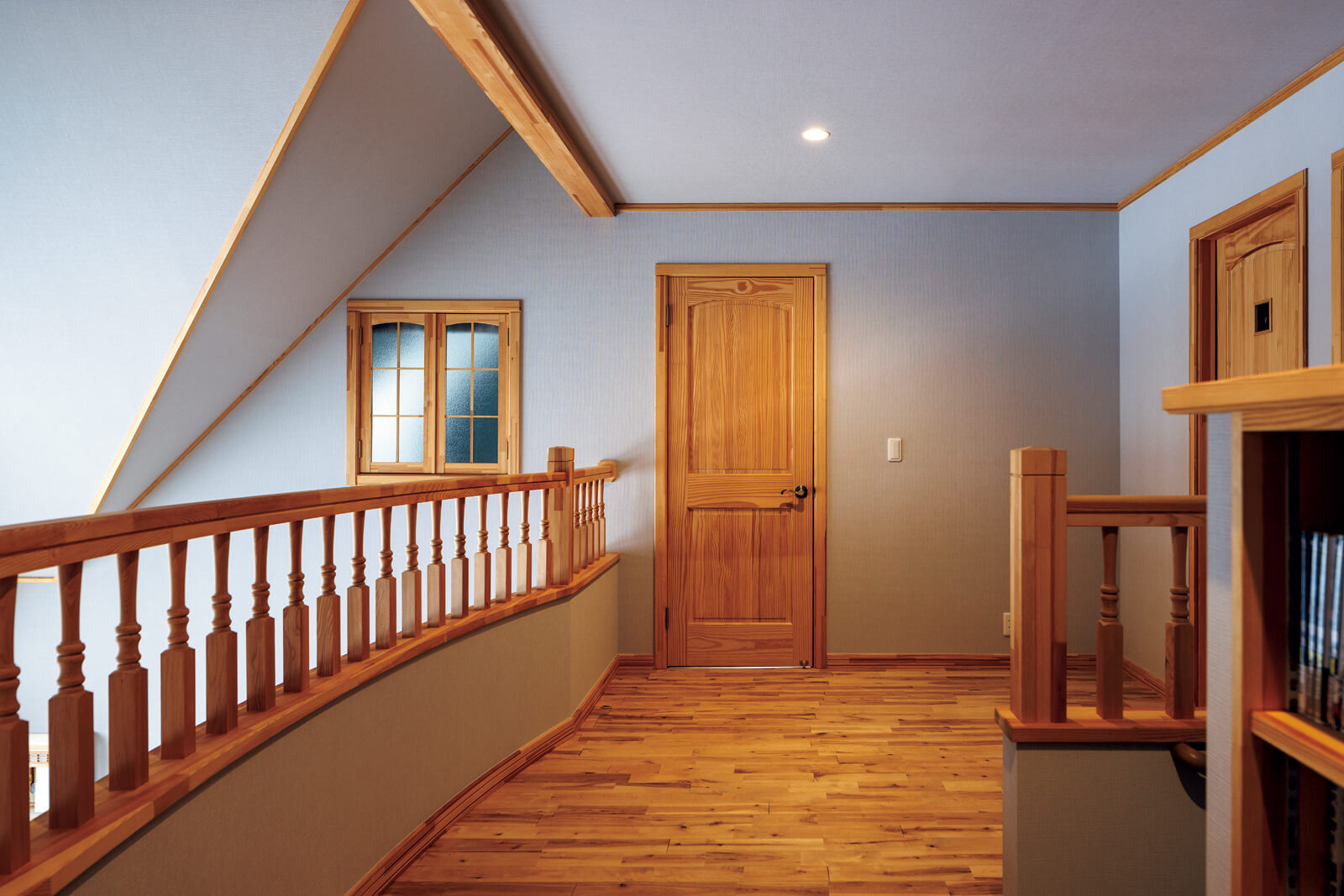 とかち工房は「木の家に住みたい」というMさんの要望に応え、パイン材をふんだんに用いたカントリーテイストの住まいを提案。窓にはスウェーデン製木製トリプルサッシ、玄関ドアにも木製断熱ドアを採用し、省エネ基準を上回る性能も備えました。「初めての家づくりで分からないことばかりで不安でした。でも、とかち工房は私たちの暮らしやすさを親身になって考えた提案をたくさんしてくれたので、安心してお任せできました」と奥さん。