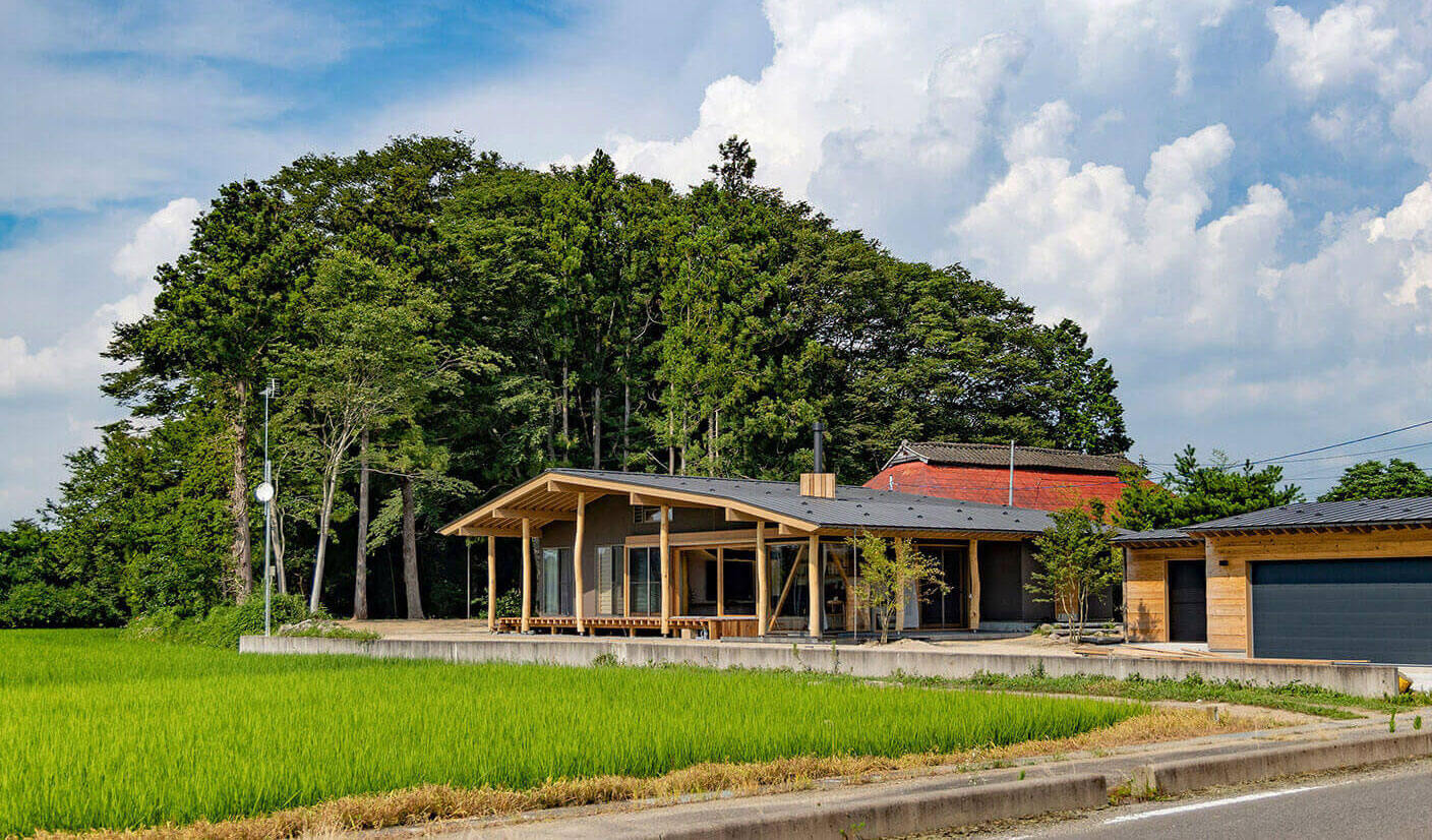 田舎には土地がたくさん余っているように見えますが、手つかずの自然を望みつつ宅地用の土地を見つけるのは至難の業。福島県の地図を広げながら土地探しを進める中で紹介されたのが、須賀川市郊外にある里山の原風景が残る土地でした。建主は東京への定期的な車移動が必要だったことから、インター近くにここまで条件がそろった土地が見つかったのは奇跡的なことでした。