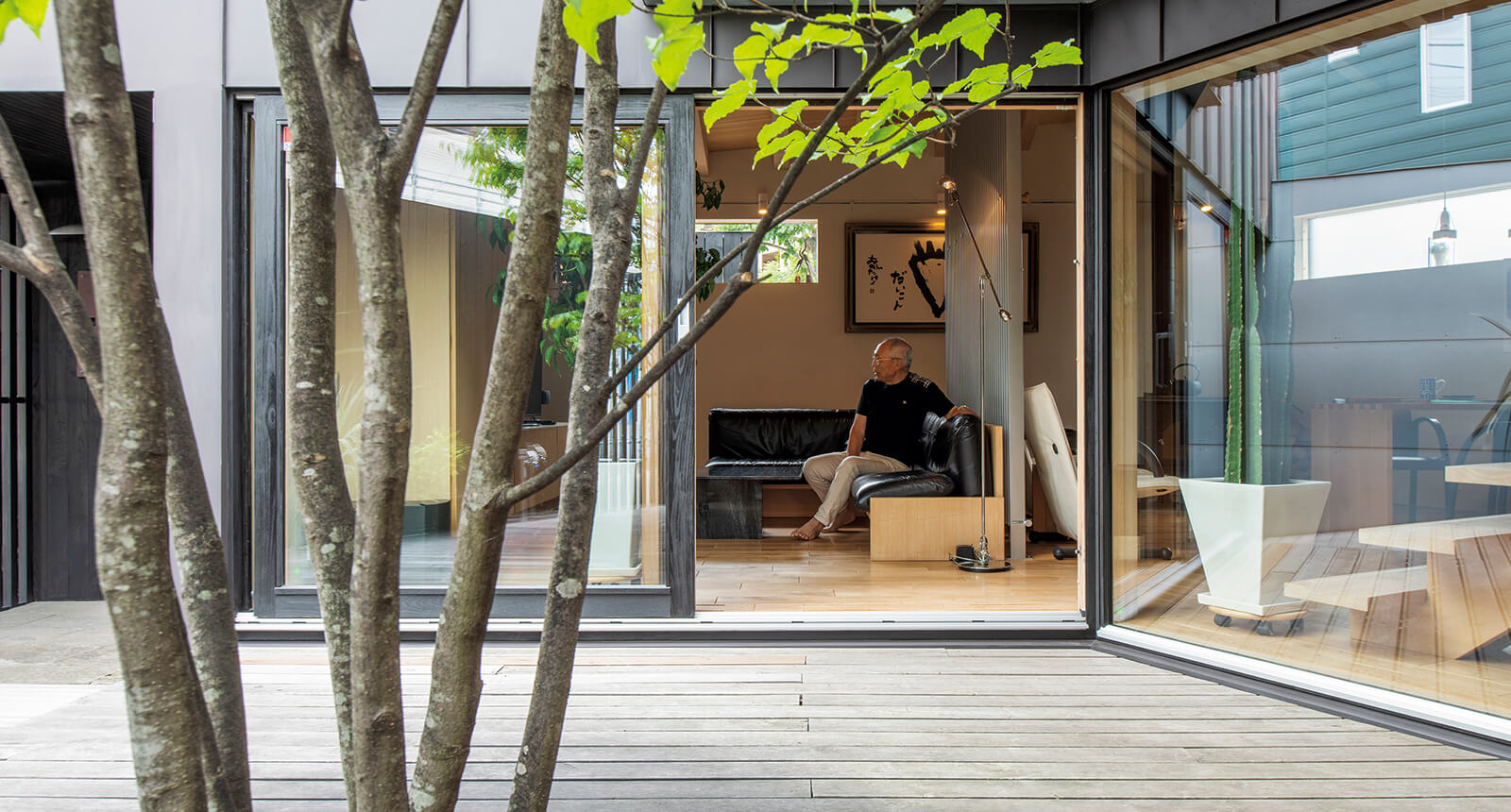 大手ハウスメーカーの規格住宅、RC造のデザイナー住宅と住み継いできたMさんご夫妻。「夫婦二人暮らしによりフィットする木の家で老後を過ごしたい」と3度目の新築を決意しました。そしてMさんの目に留まったのが、建築雑誌に紹介されていたTAO建築設計の住まい。「女性建築家ならではの細やかな気配りが期待できそう」と、所有していた50坪の変形敷地での新築を依頼しました。「要望は、ワンルーム感覚で暮らせる自然素材の家。細部はお任せしました」と、Mさんは当時を振り返ります。