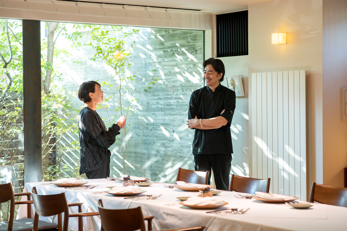 パネルヒータの設置後は、弘田さんの提案で「営業を終え帰宅するときに設定温度を低くし、翌日仕込みを始めるのと同時に温度を上げて店内を暖める」のが、高尾さんの日々の習慣になりました。設定温度は低くても、夜通し床や壁、天井が暖められることで、開店以来、悩みの種だった店内の温度ムラも解決しました。「陽の光のように優しい温もりは、どこか懐かしい感じがして落ち着きます。お客様が席に着いてから最後のデザートまで約3時間、居心地の良さを保てるのが嬉しいですね。暖房を意識させない自然な温もりも、うちの料理の一部になったような気がします」と、高尾さんは満足そうに話してくれました。