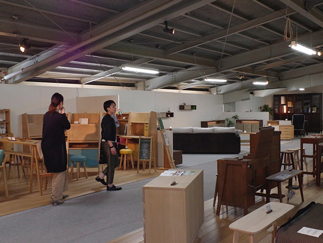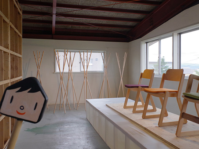 まず訪れたのは、株式会社大雪木工さん。今回のテーマは「途中」だそうで、まさに今リニューアル「途中」というショールームを見せてもらったよ。