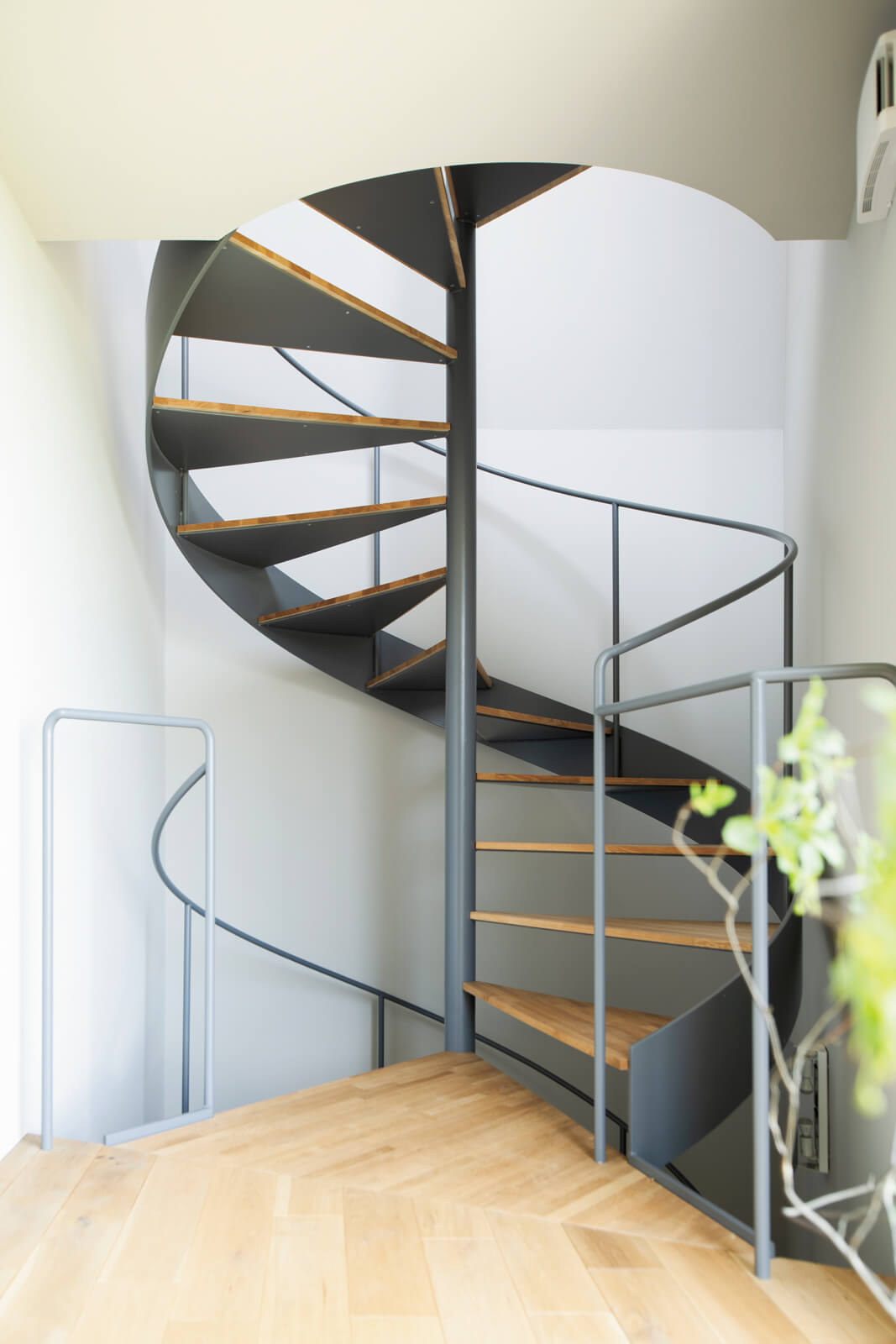大磯エリアの海を望む高台に完成したのは、一見すると閉鎖的な外観が目を引く全面スギ板張りの住まい。一歩室内に足を踏み入れると、静かで落ち着いた空気に包まれます。広い土間玄関かららせん階段を上ると、東側の大開口から海を望めるLDKに思わず息を呑むと同時に、天井高を低く抑えたダイニングと、吹き抜けで採光を確保したキッチンのメリハリが目を引きます。視線が海の方へ自然と向く開放感と、家族だけの静かな時間を演出する設えが、大磯らしい暮らしへ導いてくれるようです。