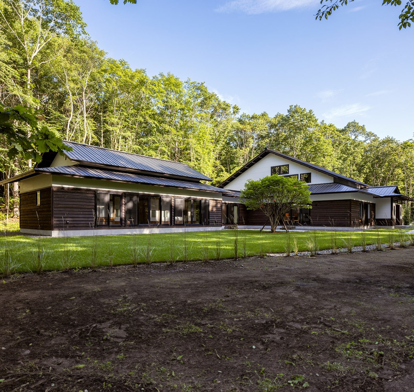2023年夏、町の環境保全林として残された広大な森に移築された旧幅田邸は、3つの客室とダイニングを持つ「森厚真HOTEL CHUPKI(ホテルチュプキ)」へと生まれ変わりました。120年前に平屋造りで新築された建物は、富山県砺波地方の伝統的な「枠の内」という木組みの力強く洗練された美しさを生かして再生。既存の木組みを現しにし、建具、欄間を可能な限り再利用した建物は、大工の手仕事がそこかしこに見えます。同時に、住宅づくりで培った国の省エネルギー基準をクリアする高い温熱性能も実現。100坪の建物は、厳冬期も快適な室内環境を保つことができます。