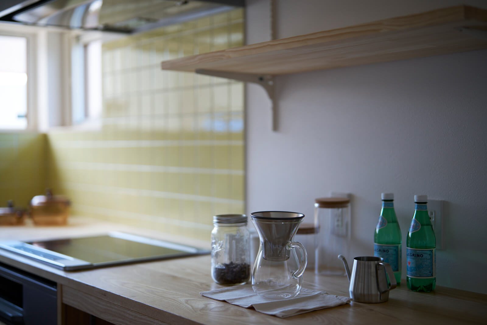 完成した新居は、延床面積約20坪のコンパクトな空間。畳コーナーを備えたLDKと寝室、水まわりが無駄のない動線で結ばれています。これから整備を進める庭や町を縁取る山並み、スキー場を一望する大きなピクチャーウインドウも設置。窓越しに遠くまで視線が抜けていくリビングは開放感抜群で、キッチンからも景色が楽しめます。「この土地の魅力は、自然豊かな眺望。その良さを最大限に楽しめるよう、開口の大きさや位置にもこだわりました」と、代表の髙山さん。