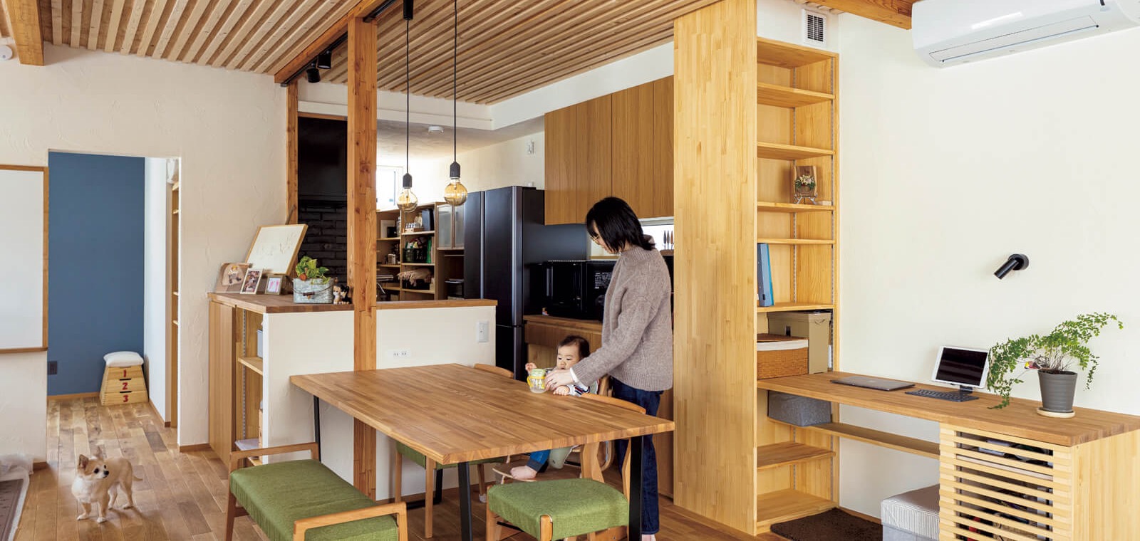 Replanが取材した、北海道・東北の素敵な住まいづくりの話をご紹介します。 (株)芦野組 / 旭川市・Mさん宅 夫婦20代、子ども1人、犬2匹