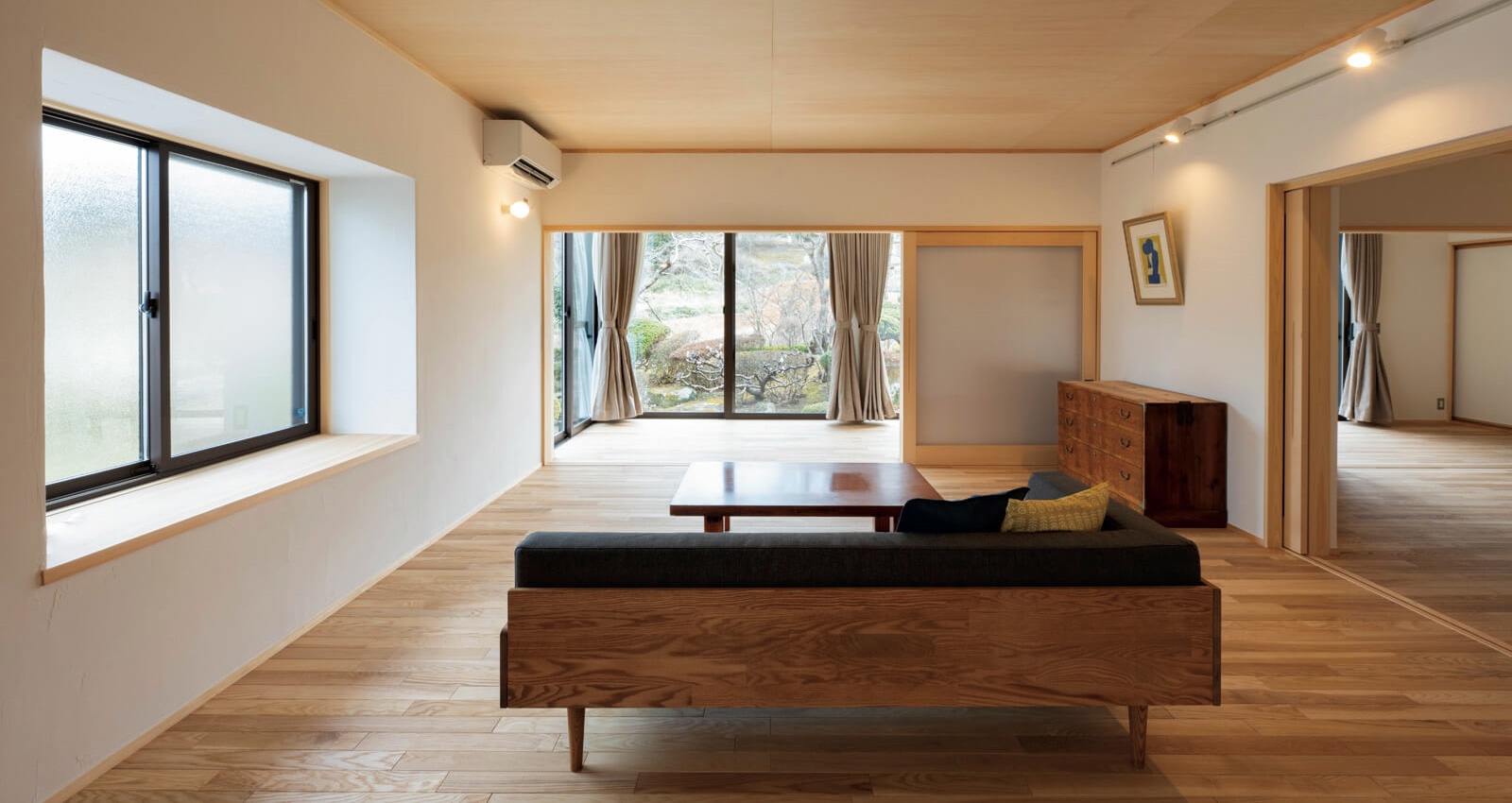 長い間ご家族の憂鬱の種だった古い家特有の冬の寒さも、内壁に断熱材を充填し、窓を高性能サッシに取り替えたことで解決。リノベーション前はファンヒーターでもなかなか暖まらずに寒さに耐えながら過ごしていましたが、断熱改修の効果で新設のエアコン1台で室温を均一に保てるように。これからは一年を通して快適に過ごせます。