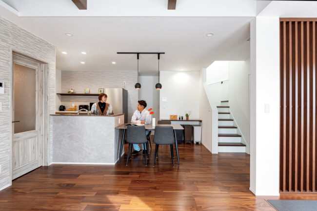 土地を決め、依頼先を探すために全国規模のハウスメーカーから地元工務店まで10社ほど見学。じっくりと検討を重ね、住工房iを選びました。理由は、住宅性能や設計の自由度、コストパフォーマンスの高さ。「人生で一番高い買い物ですから、納得して決めたかったです。完成見学会には5回以上足を運びました」とAさん。