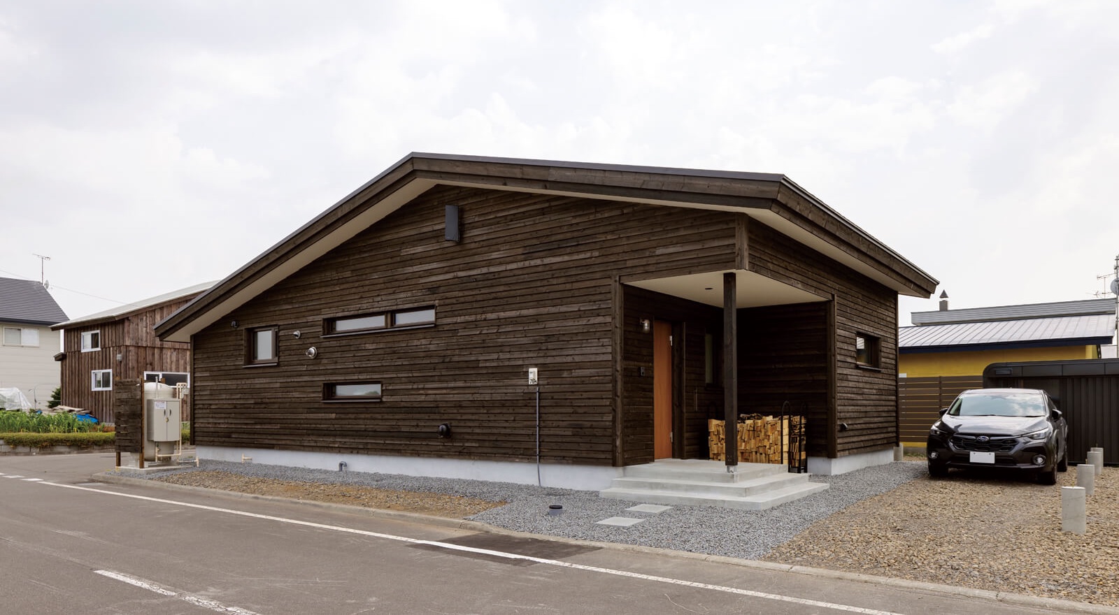 ご夫妻が家づくりを依頼したのは、美瑛町でも施工実績が多い芦野組。薪ストーブを主暖房にし、暖かく快適に過ごせる平屋であることと、自然素材を生かした外観と内装。「芦野組なら、これらの要望がすべて叶えられると思った」と、ご夫妻は言います。2023年の秋に新築工事が始まり、ご夫妻は仮住まいをしながら、工事の進行を見守りました。「大工さんの丁寧な仕事や30㎝もの壁の厚みを見て、丈夫で暖かい家ができると確信しました」と、奥さんは施工時を振り返ります。