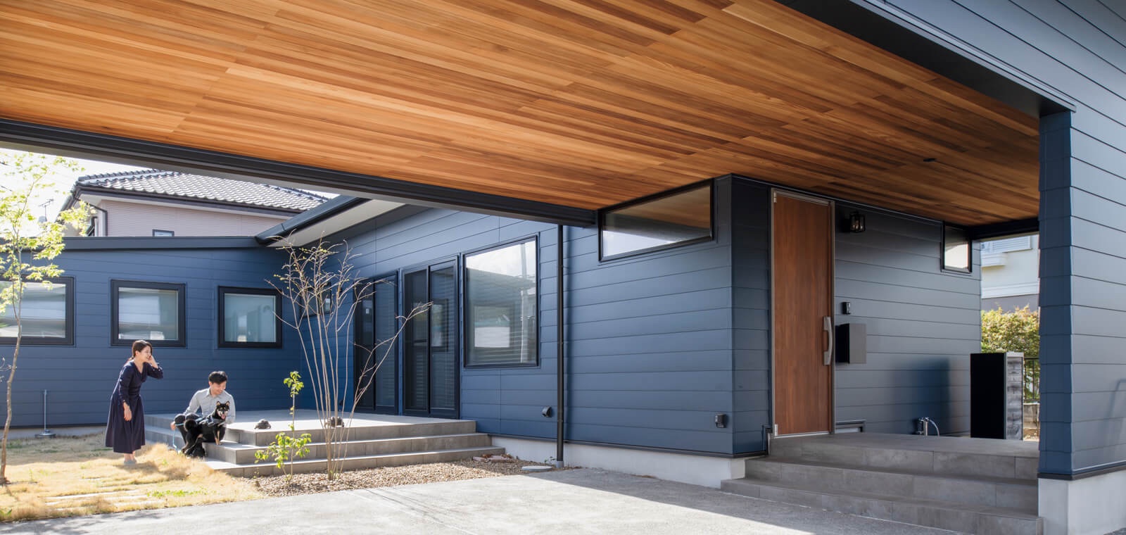 緩やかな勾配屋根に、南からの陽当たりを存分に活用する7.92kWの太陽光発電パネルが搭載され、省エネな暮らしをサポート