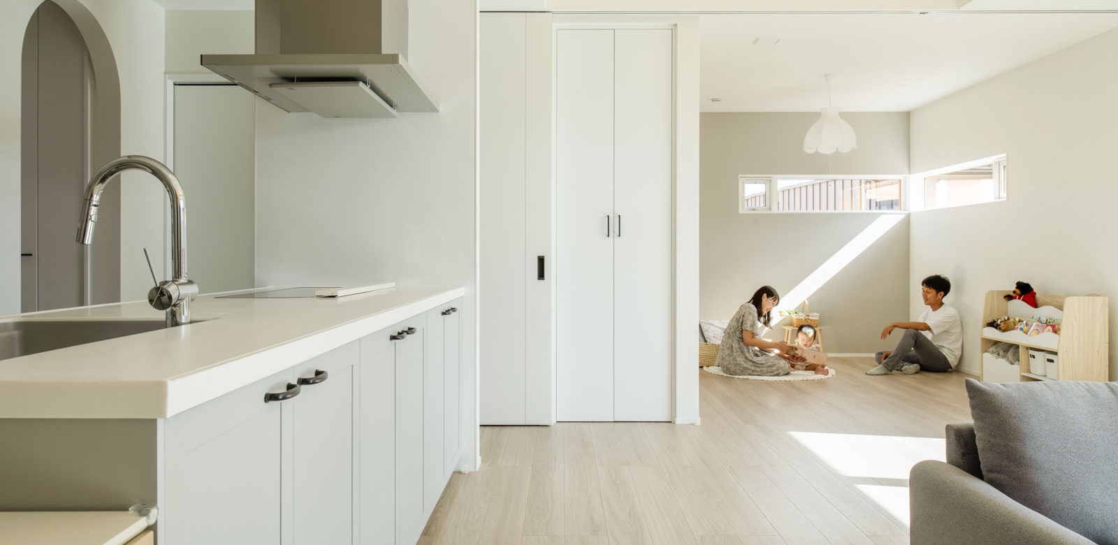 時間をかけてじっくりと煮詰めたプランをもとに、2024年春から工事を開始。「内装工事の終盤になって、憧れていたアールの垂れ壁をキッチン横の通路に実現したくなり、大工さんにお願いしたら、すぐにつくってくれたんですよ。こうしたわがままにも柔軟に対応してもらえたのが、とても嬉しかったです」と、奥さんは話します。