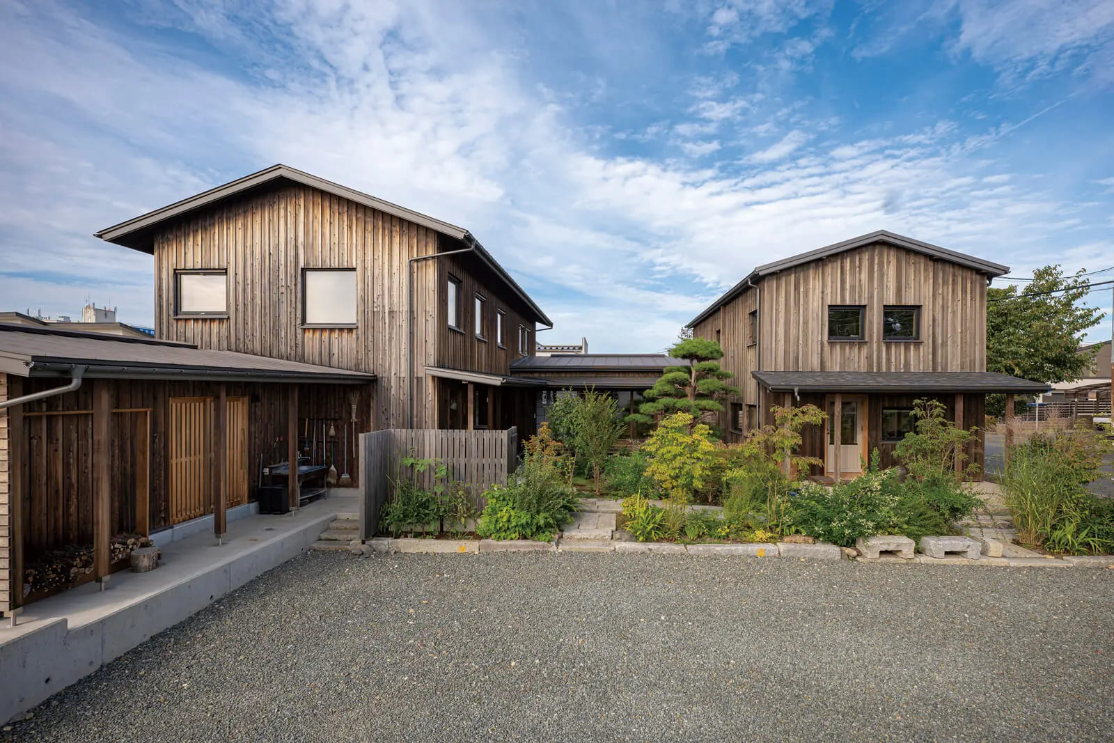 清水畑建設の社屋は2021年4月に竣工。事務所を2階に設け、1階はお客様が来れば応接室として、展示会やワークショップが開催されれば「ハタノバ」としても機能する多目的なスペースです。伝統的でありながらモダンなデザインが「地域の新たな景観を形成する」建築であると評価され、同じ敷地に2019年に建てた自邸「観岳ヶ原の家」とともに「令和3年度盛岡市都市景観賞」を受賞しました。