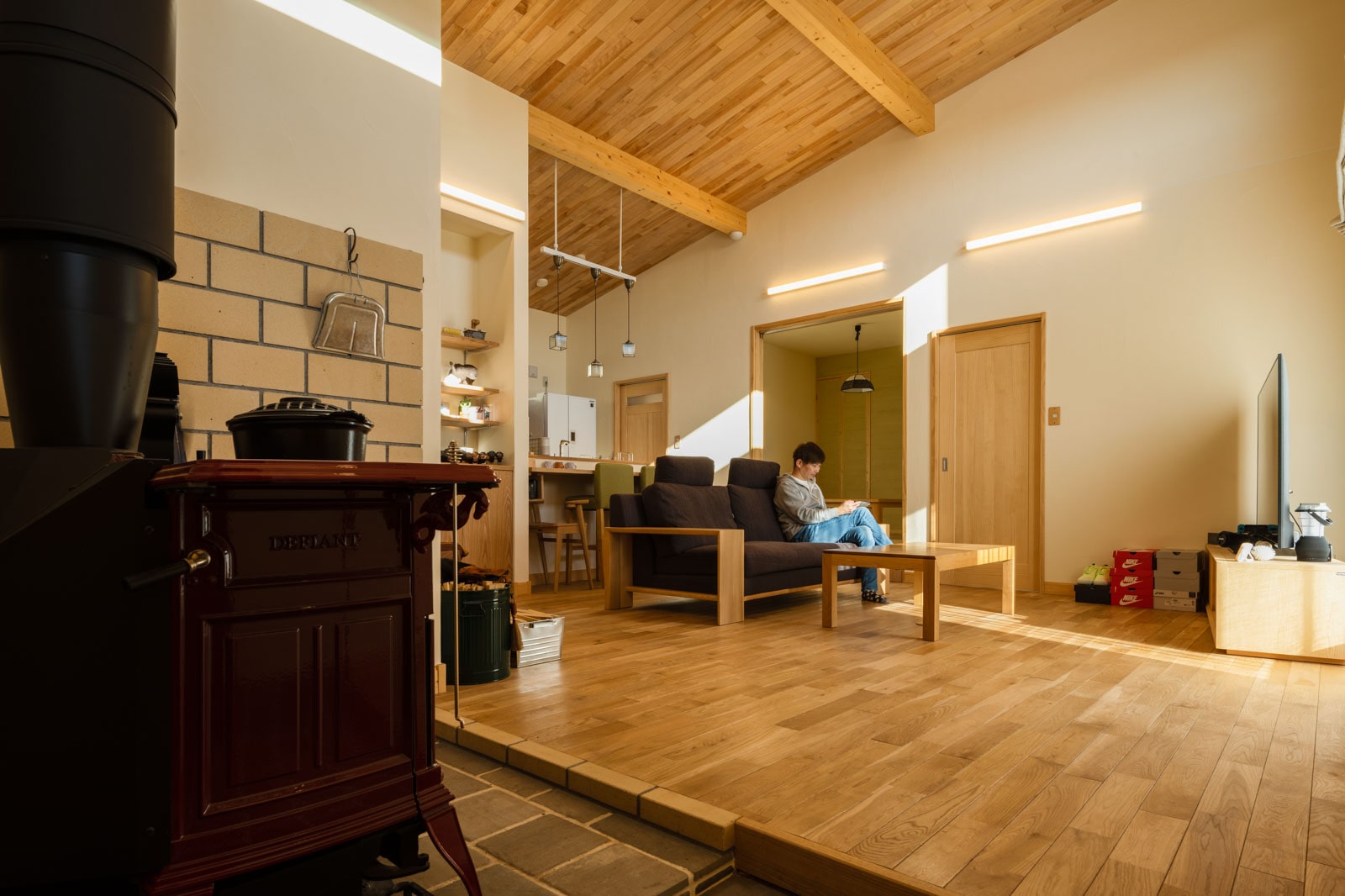 一目ぼれの薪ストーブが映えるこだわりに満ちた木の家