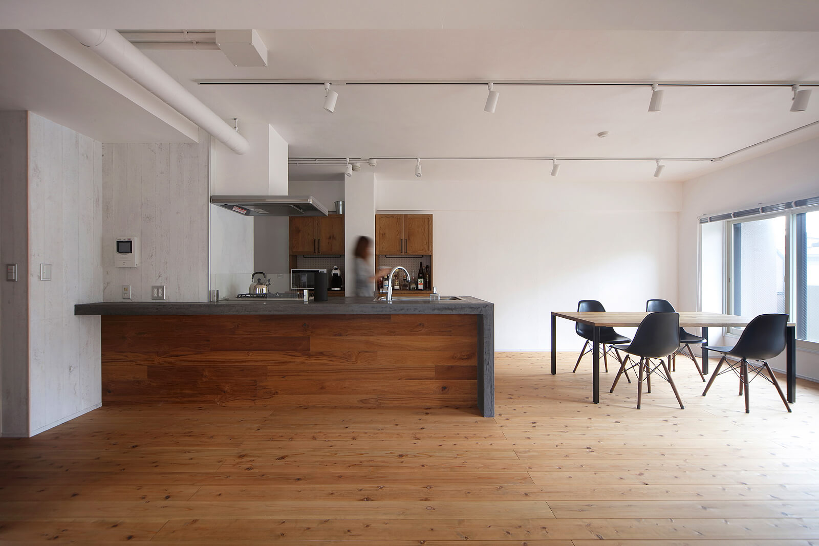 「中古の戸建てだと構造上取り外せない柱や壁があり、大空間の間取りを実現するのは難しい面があります。その点、マンションなら空間のすべてをスケルトンにしてから自由な間取りを創り上げることができるのが魅力でした」。中古マンションのリノベーションを選択した理由を、そう語ってくれました。