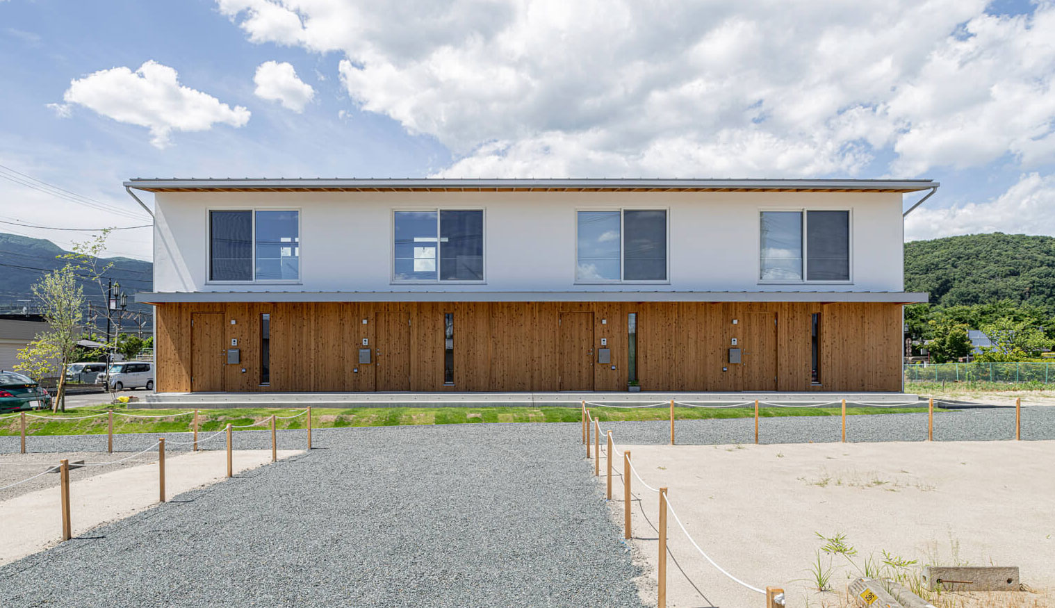 そんな国見エコタウンに2025年6月、家守舎桃ノ音が企画した賃貸集合住宅「森のスミカapartment.」が誕生しました。これは「森のスミカ」のコンセプトに合わせた高性能エコアパートで、設計を仙台の一級建築士事務所、株式会社亀岡建築アトリエの亀岡真彦さん、施工を渡辺建設が手がけました。