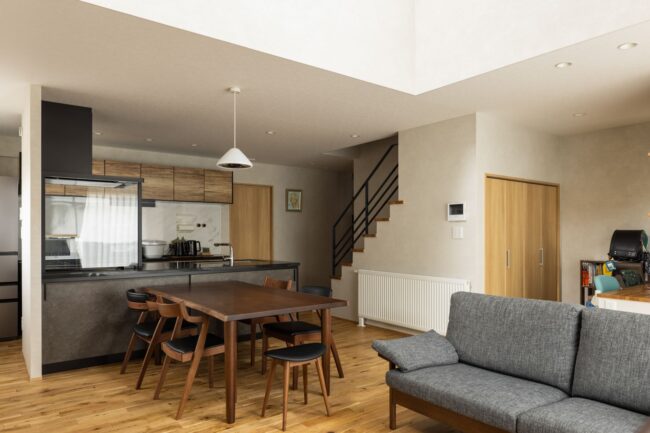 Dさんご夫妻が熊谷さんに伝えたのは「家事がしやすく、長く住める、居心地のいい家」。家事動線、収納力、そして将来同居するお母さんのことを考えたバリアフリー設計など、実用性を重視したいというリクエストでした。「デザインについては特に希望がなかったので、大まかな枠組み以外の細かな部分は、熊谷さんにご提案をいただきながら詰めていきました」と、Dさんは振り返ります。