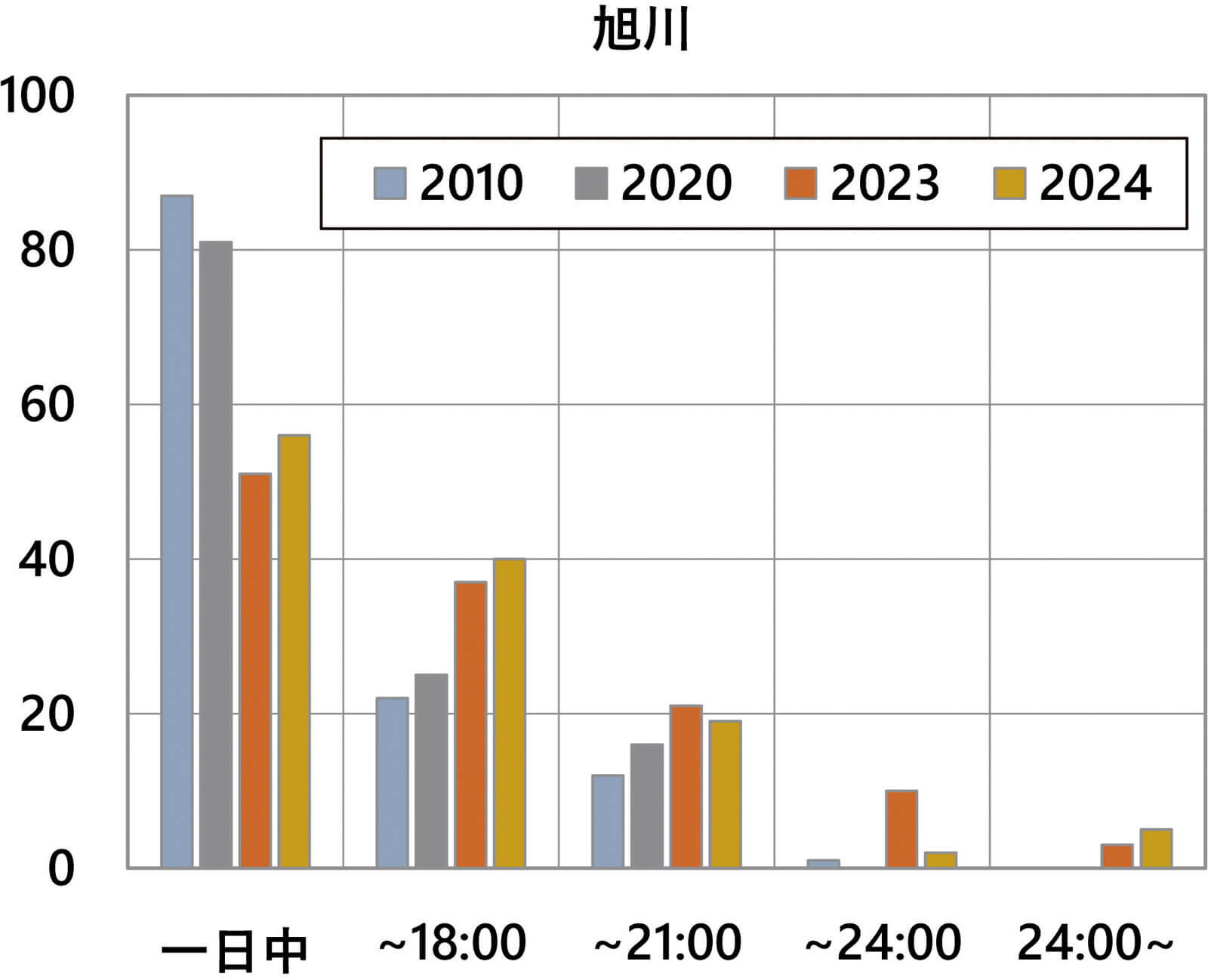 北海道の旭川、札幌、帯広について同じような集計を行ったのが図4です。
