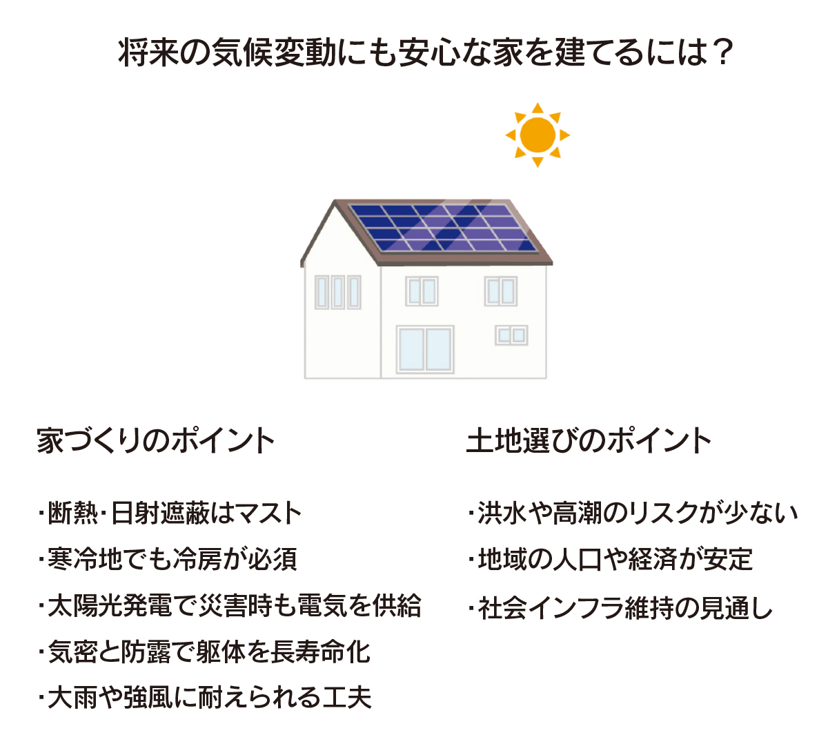将来に備えた安心の家づくり(図7)の第一歩は、まずは自然災害の少ない安心の土地を見つけること。