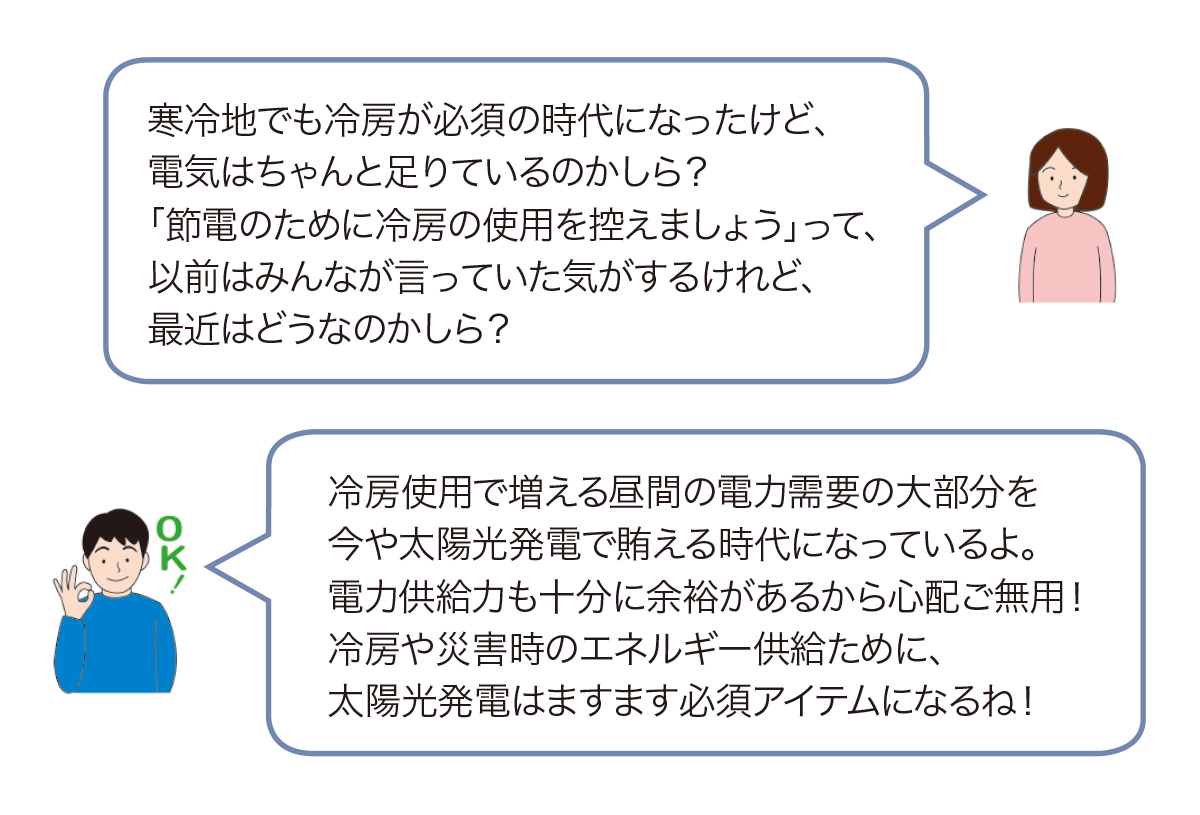 寒冷地でも夏は冷房が必須の時代ですが、はたして冷房に必要な電気は足りるのでしょうか。ちょっと前までは、夏になると電力会社が「エアコンの利用を控えましょう」「設定温度を上げましょう」と節電キャンペーンを連日繰り広げていましたから、電力の不足が心配になるのも無理はありません。