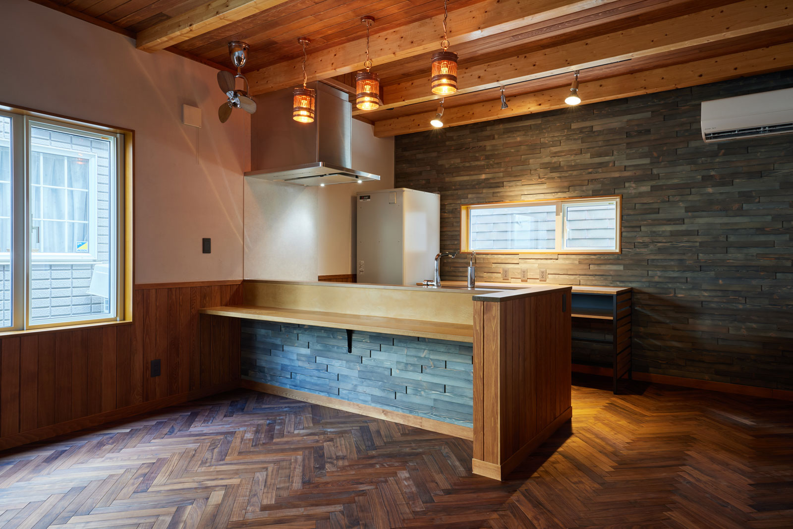 自社と同じエリアにあるリフォーム会社に施工をお願いしたいと考え、数社に問い合わせをしてみたというMさん。しかし、一番の希望であった「ヘリンボーンの床」を施工できる会社が見つからず、依頼先を工務店に変更したそう。そんな中、桧山建設綜業でその希望が叶えられると分かって依頼を決めました。