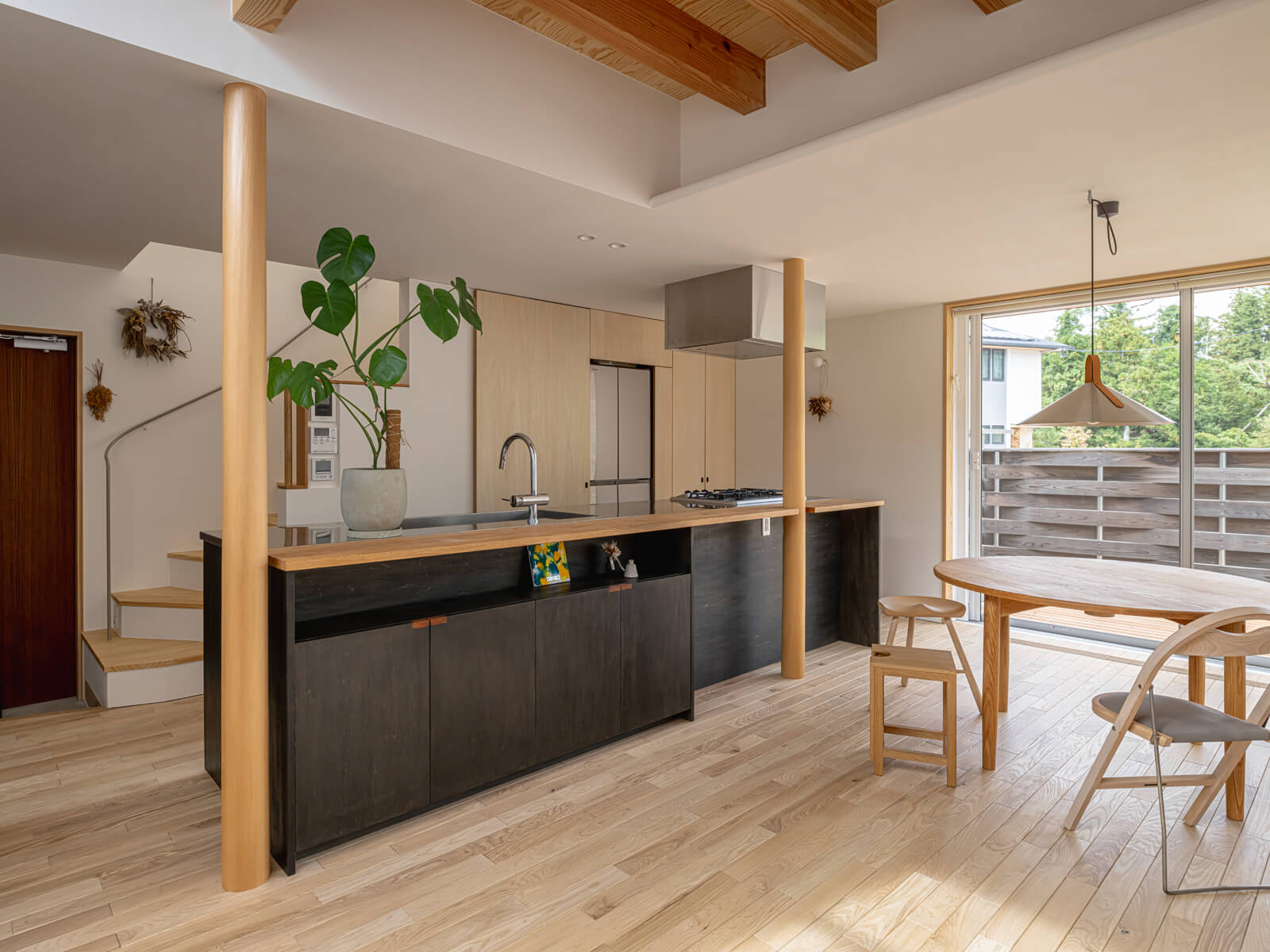 設計は、オリジナル家具製作から住宅・店舗の設計まで手がける仙台市の「STUDIO DESSERT」が担当しました。Kさんは以前、同社に家具職人として勤めていたことがあり、当時から自然素材の使い方や造作の美しさ、間取りの自由度の高さなどに惹かれていたそう。「任せて安心という確かな信頼感もありました」と振り返ります。参考までに他の設計事務所にも話を聞いたものの、最終的には迷わず依頼を決めました。