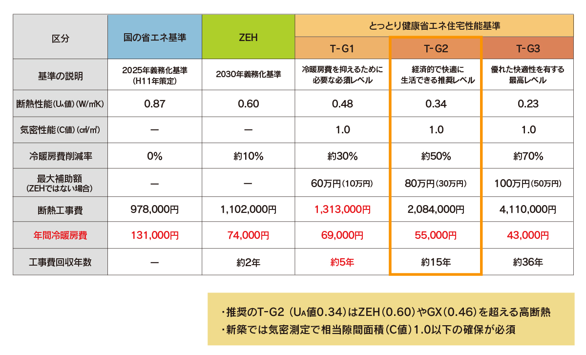 「NE-ST」の推奨レベルは、GXの断熱等級6を超えるT-G2。さらに気密確保も必須とするなど、健康・快適な暮らしを確実に実現できる十分な性能となっています。