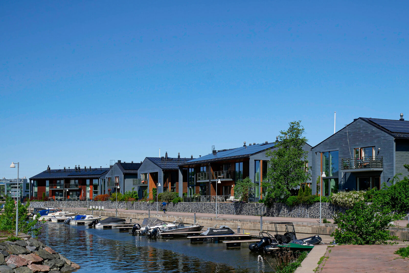一方でへルットニエミのようなエリアでは、古い一戸建て住宅地と新しい集合住宅が共存し、多様な世代が混ざり合って暮らしています。ここで特筆すべきは、新しく建てられる住宅の質の高さです。フィンランドの集合住宅は、高い断熱性能はもちろん、各住戸にサウナが備わっていたり、共有部分に広々としたランドリールームやワークスペースが設けられていたりと、個のプライバシーとコミュニティーのバランスが絶妙に設計されています。単なる建て売りではない、エリア全体の価値を高める「コンセプト型開発」のモデルケースといえるでしょう。