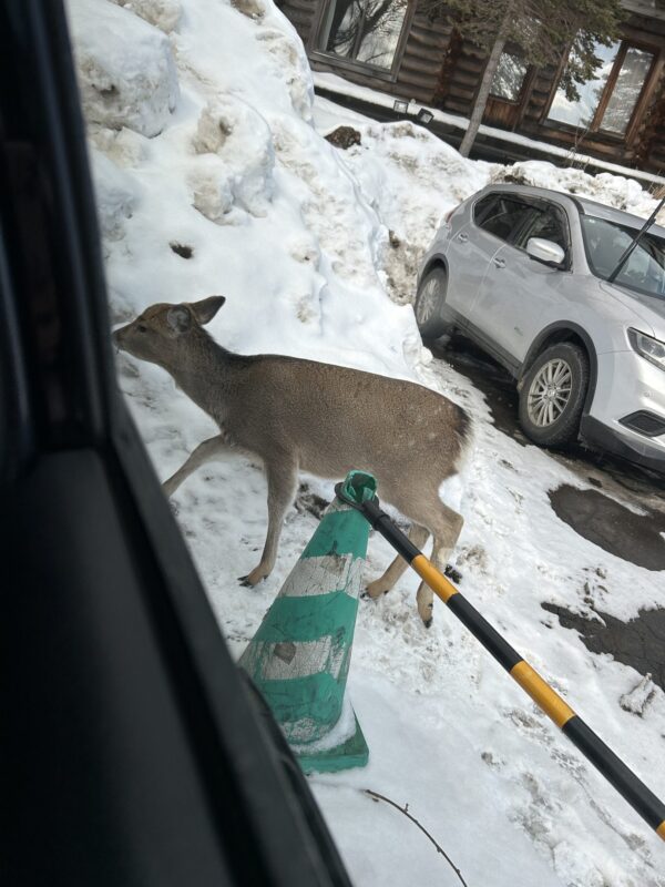 朝起きると、この景色。冬の支笏湖、とても風情があって気に入りました。なんだか少し遅めのお正月休み気分を味わえました。帰りもしっかり鹿のお見送り付きでした(笑)