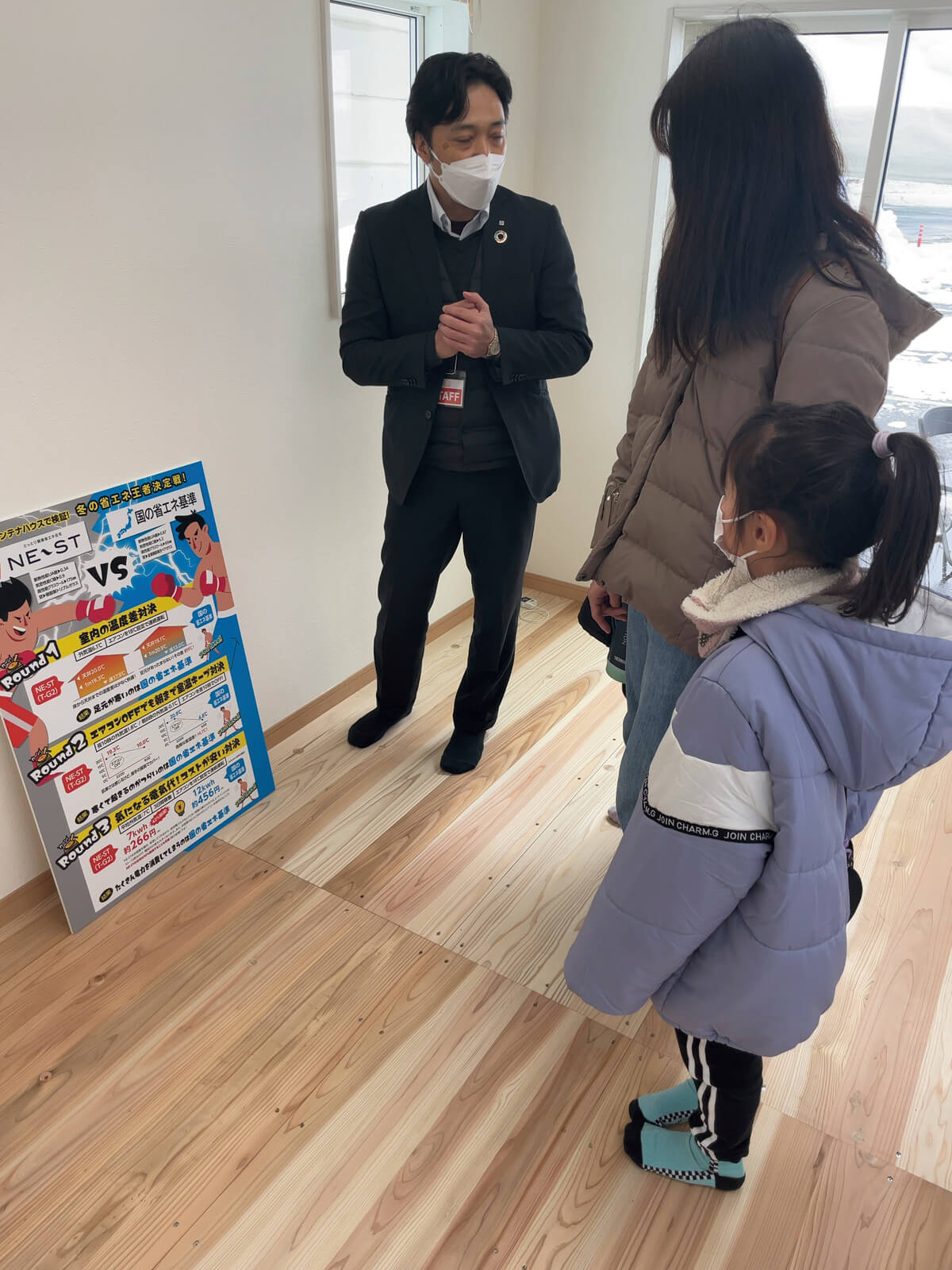 ホームページや印刷物でかみ砕いて紹介はしていますが、正直、体感に勝るものはないと思っています。地域工務店の協力を得て、国の基準によるユニットと「NE-ST」のT-G2を持つユニット、2種類の体感ユニットを製作し、イベントなどに出展して快適性を比べてもらうという試みを行っています。