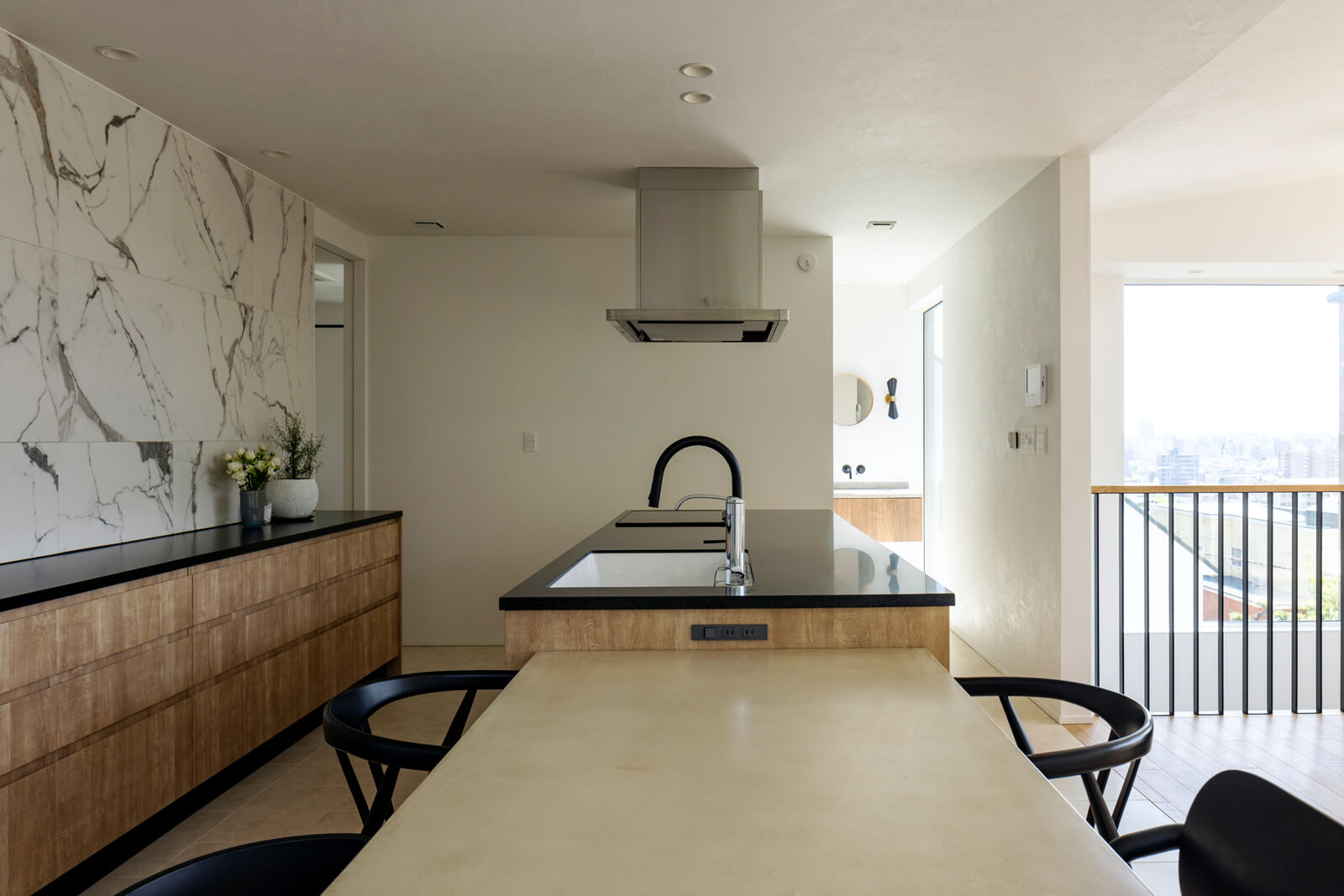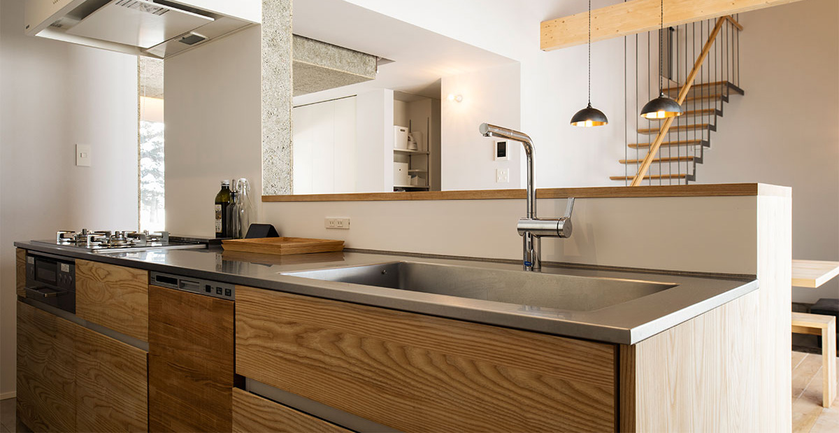 リビング・ダイニングとつながる対面キッチンは、奥行きを広げることで作業効率や多機能性を高めやすいのが特徴です。