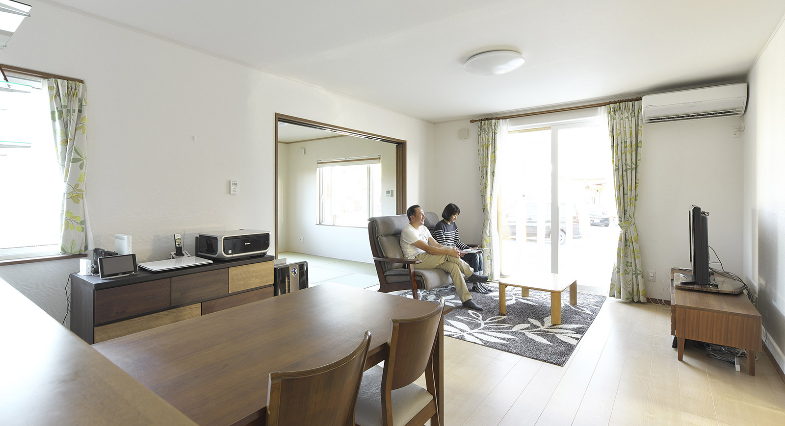 この家で初めての夏を過ごしたMさんご夫妻は、「暑い日でもエアコンがフル稼働しないんです。家中が快適で、住宅性能の素晴らしさを実感しました」と、大満足の様子。寒い季節は、床暖房が足下から暖めてくれるので健康にも優しく、雪国の家づくりを知り尽くしている、かわさき住宅ならではの提案が光る住まいです。