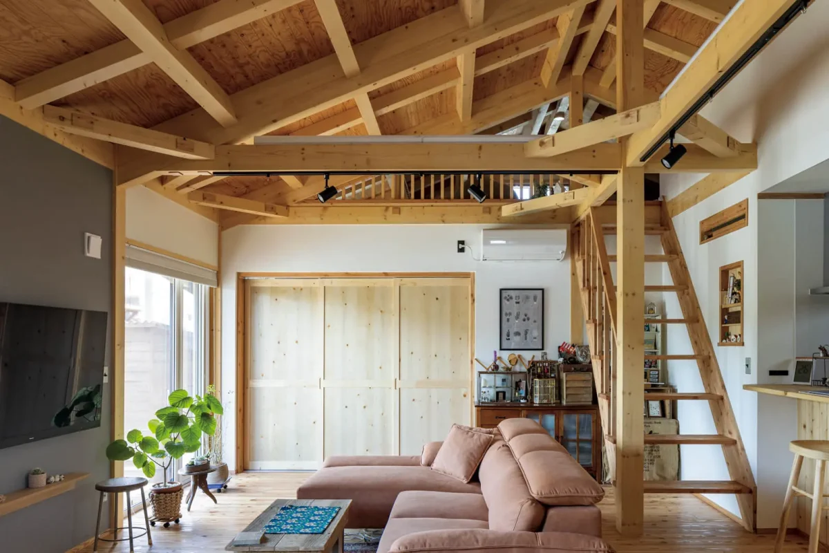 - バリアフリー,二世帯住宅,吹き抜け,回遊動線,平屋,薪ストーブ
