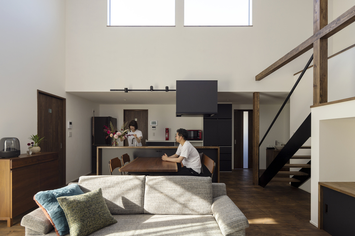 - ガレージハウス,コートハウス,バリアフリー,二世帯住宅,吹き抜け,回遊動線,店舗併用,薪ストーブ