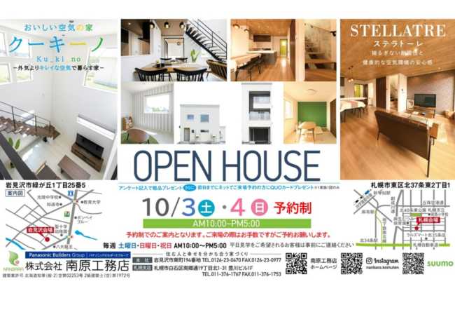 10/3(土)・4(日)札幌市東区にて「ステラトーレ」モデルハウス見学会開催|南原工務店