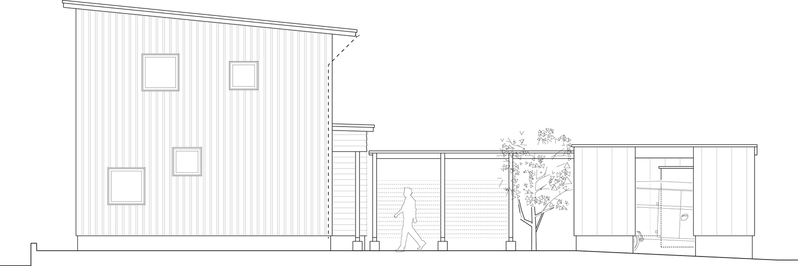 奥へと誘うアプローチのある暮らし「庇をつなぐ家」