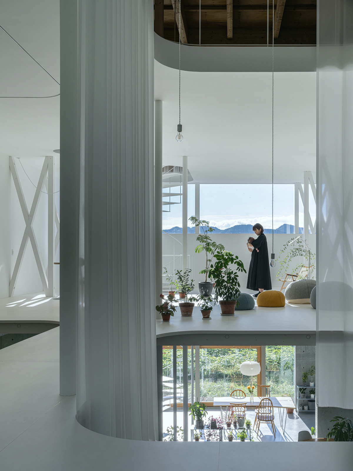 寝る場所や食べる場所など、用途が決められていない、どこで寝ても、どこで食べても、どこで読んでも、どこで遊んでも良いような、家族それぞれがその時の感情で、自ら好ましい場所を見つけて生活する、気楽で自由な建築です。
