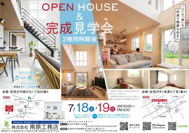 お知らせNews お知らせ最新情報「オープンハウス情報」 (43 / 60 ページ) 7/25(土)~8/7(金) 2週間限定公開!提案型住宅オープンハウスのお知らせ|シノザキ建築事務所 オープンハウス情報 公開日:2020.7.13 7/18(土)〜19(日)北海道岩見沢市にて完成見学会開催のお知らせ|南原工務店 オープンハウス情報 公開日:2020.7.13 7/18(土)〜19(日)北海道岩見沢市にて「クーキーノ」モデルハウス見学会開催|南原工務店 オープンハウス情報 公開日:2020.7.13 7/18(土)・19(日)「家族の団らん」と「自分時間」をどちらも楽しめる家 新築注文住宅の完成見学会開催【予約制】※オンライン見学可能|リビングワーク オープンハウス情報 公開日:2020.7.13 【1日限定】8/5(水)「苫小牧の住宅」オープンハウス開催のお知らせ|五十嵐淳建築設計事務所 オープンハウス情報 公開日:2020.7.10 【事前予約制】7/18(土)・19(日)南会津町にて完成見学会開催 ~無垢材に囲まれた薪ストーブの家~|(株)星工務店 オープンハウス情報 公開日:2020.7.9 8/1(土)札幌市南区にて「大きな屋根のいえ」オープンハウス開催のお知らせ|アーキラボ・ティアンドエム オープンハウス情報 公開日:2020.7.7 7/11(土)〜12(日)北海道岩見沢市にて「クーキーノ」モデルハウス見学会開催|南原工務店 オープンハウス情報 公開日:2020.7.6 7/11(土)・12(日)「家族の団らん」と「自分時間」をどちらも楽しめる家 新築注文住宅の完成見学会開催【予約制】※オンライン見学可能|リビングワーク オープンハウス情報 公開日:2020.7.6 7/22(水)〜8/2(日)北海道旭川市にて完成見学会開催のご案内 ※完全予約制|アクト建築工房 オープンハウス情報 公開日:2020.7.1 7/4(土)・5(日)「家族の団らん」と「自分時間」をどちらも楽しめる家 新築注文住宅の完成見学会開催【予約制】※オンライン見学可能|リビングワーク オープンハウス情報 公開日:2020.6.30 北海道江別市にて「大麻北町モデルハウス」常時公開中|住研ハウス オープンハウス情報 公開日:2020.6.29 札幌市清田区にて「STVハウジング平岡展示場 常設モデルハウス」公開中|住研ハウス オープンハウス情報 公開日:2020.6.29 北海道恵庭市にて「駒場モデルハウス」常時公開中|住研ハウス オープンハウス情報 公開日:2020.6.29 43 / 601«...424344...»60 よく読まれている記事 DAILY WEEKLY No.1 地図上でわかる!札幌市ヒグマ出没情報マップ No.2 実例写真で解説。代表的な6つのキッチンレイアウトの種類と特徴 No.3 壁・天井を照らす「間接照明」とは?リビングや寝室、トイレにも No.4 「キッチン家電の収納」の基本とアイデア。上手な配置で料理の時短に No.5 使いやすさのポイントは?クローゼット収納の基本と上手な使い方 No.6 コンクリートの丸いくぼみの正体と、Pコン穴(セパ穴)を使ったフックのご紹介! No.1 地図上でわかる!札幌市ヒグマ出没情報マップ No.2 使いやすさのポイントは?クローゼット収納の基本と上手な使い方 No.3 実例写真で解説。代表的な6つのキッチンレイアウトの種類と特徴 No.4 「キッチン家電の収納」の基本とアイデア。上手な配置で料理の時短に No.5 瑕疵(かし)の意味は?経年劣化とは?知っておきたい、住宅メンテナンスの用語 No.6 壁・天井を照らす「間接照明」とは?リビングや寝室、トイレにも ニュースカテゴリ 新製品情報 Replan発売情報 HP更新情報 お知らせ Replanからのお知らせ オープンハウス情報 イベント情報 Replan編集部おすすめの記事 2度目のアルヴァ・アアルト自邸探訪で知ったこと、感じたこと。 積雪寒冷地ならではの住まいの変遷|北海道 引き算がくれる暮らしの余白 「何もないまち」をリノベーション-吉田村Village 東川町の一棟貸し宿で、バイキング「マイロ4」の美しい炎と景色に憩う 家づくりでよく使われる道産木材の樹種とは?