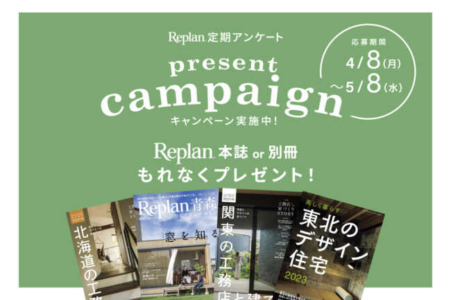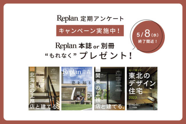 お知らせNews お知らせ最新情報「お知らせ」 (7 / 56 ページ) Replan Tool(リプランツール)のご紹介 Replanからのお知らせ 公開日:2024.5.30 【6/13発売】Replan宮城2024 Replan発売情報 公開日:2024.5.29 「rassembler」の写真をWORKSにアップしました|ATELIER O2/アトリエ オオツウ お知らせ 公開日:2024.5.17 最終更新:2024.5.20 Replan Tool(リプランツール)のご紹介 Replanからのお知らせ 公開日:2024.5.17 7/21(日)・8/18(日)・9/14(土)・10/20(日) ゆりがはらオーガニックマーケット開催|ビオプラス西條デザイン イベント情報 公開日:2024.5.13 Replan Tool(リプランツール)のご紹介 Replanからのお知らせ 公開日:2024.5.2 【終了間近:5/8(水)まで!】Replanの本をもれなくプレゼント! Replanからのお知らせ 公開日:2024.5.2 最終更新:2024.5.8 GW休業のお知らせ【(株)札促社/住宅雑誌Replan】 Replanからのお知らせ 公開日:2024.4.24 3月22日(金)「Replanフォーラム2024 in 宮城」を開催しました。 Replanからのお知らせ 公開日:2024.4.23 【もれなくプレゼント!】Replan定期アンケートキャンペーン 実施中! Replanからのお知らせ 公開日:2024.4.22 最終更新:2024.5.8 Replan Tool(リプランツール)のご紹介 Replanからのお知らせ 公開日:2024.4.19 【もれなくプレゼント!】Replan定期アンケートキャンペーン 実施中! Replanからのお知らせ 公開日:2024.4.15 4月11日(木) 「美しく暮らす 東北のデザイン住宅2024」発売 Replan発売情報 公開日:2024.4.11 最終更新:2024.6.14 【もれなくプレゼント!】Replan定期アンケートキャンペーン 実施中! Replanからのお知らせ 公開日:2024.4.8 7 / 561«...678...»56 よく読まれている記事 DAILY WEEKLY No.1 地図上でわかる!札幌市ヒグマ出没情報マップ No.2 ダイニングのペンダントライト設置で注意したい、3つのポイント No.3 意外と知らない?「階段」各部の名称やかたちの種類 No.4 使いやすさのポイントは?クローゼット収納の基本と上手な使い方 No.5 実例写真で解説。代表的な6つのキッチンレイアウトの種類と特徴 No.6 壁・天井を照らす「間接照明」とは?リビングや寝室、トイレにも No.1 地図上でわかる!札幌市ヒグマ出没情報マップ No.2 実例写真で解説。代表的な6つのキッチンレイアウトの種類と特徴 No.3 使いやすさのポイントは?クローゼット収納の基本と上手な使い方 No.4 「キッチン家電の収納」の基本とアイデア。上手な配置で料理の時短に No.5 ダイニングのペンダントライト設置で注意したい、3つのポイント No.6 壁・天井を照らす「間接照明」とは?リビングや寝室、トイレにも ニュースカテゴリ 新製品情報 Replan発売情報 HP更新情報 お知らせ Replanからのお知らせ オープンハウス情報 イベント情報 Replan編集部おすすめの記事 2度目のアルヴァ・アアルト自邸探訪で知ったこと、感じたこと。 積雪寒冷地ならではの住まいの変遷|北海道 引き算がくれる暮らしの余白 「何もないまち」をリノベーション-吉田村Village 東川町の一棟貸し宿で、バイキング「マイロ4」の美しい炎と景色に憩う 家づくりでよく使われる道産木材の樹種とは?