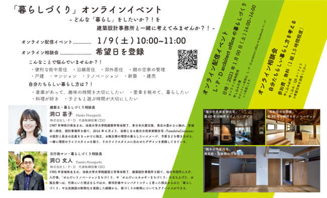 1/9(土)暮らしづくりオンラインイベント「L・P・D architect officeの暮らしづくり」開催のお知らせ|L・P・D architect office イベント情報 公開日:2021.1.7
