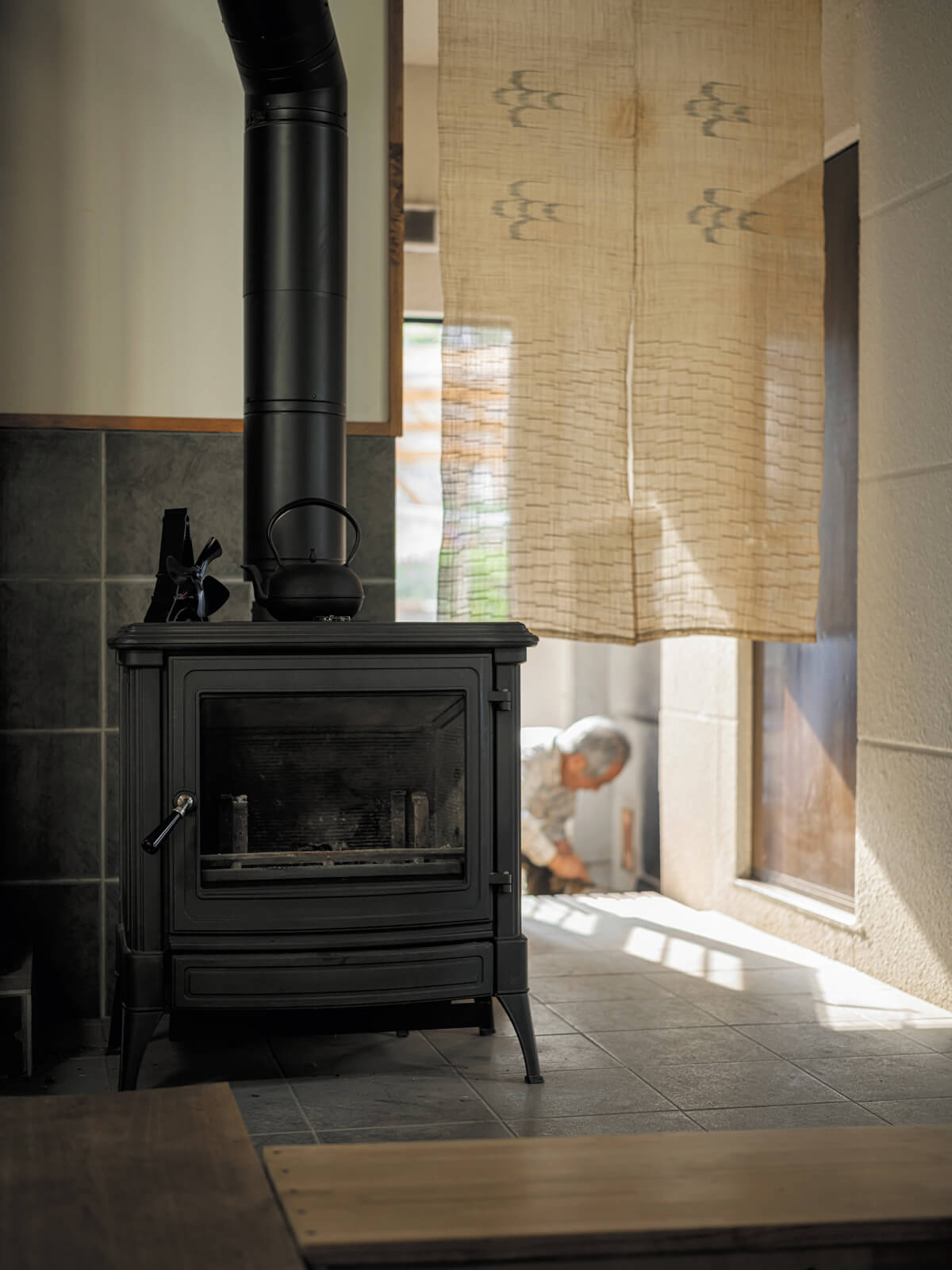 お子さんの誕生を機に、築120年の実家を住み継ぐ決意をしたMさんご夫妻。建築家の佐々木文彦さんと挑んだのは、歴史ある母屋と鉄骨造2階建ての離れを現代の暮らしに合わせる古民家リノベでした。二世帯住宅として程よい距離感を保つ鍵は、両者をつなぐ広い土間。天井裏に隠れていた重厚な柱や梁を現したLDKには、トップライトからやわらかな光が降り注ぎます。断熱改修と薪ストーブにより冬も暖かく、古い建具が醸し出す以前の住まいの面影に心安らぐ日々。先祖代々の思い出を大切に、ご家族の新たな歴史が紡がれています。